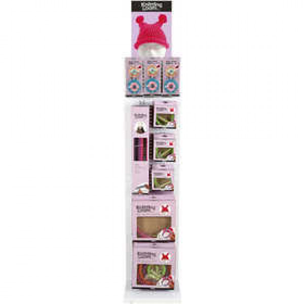 Inhoud: verschillende maten en designs breiringen en een pompom maker.