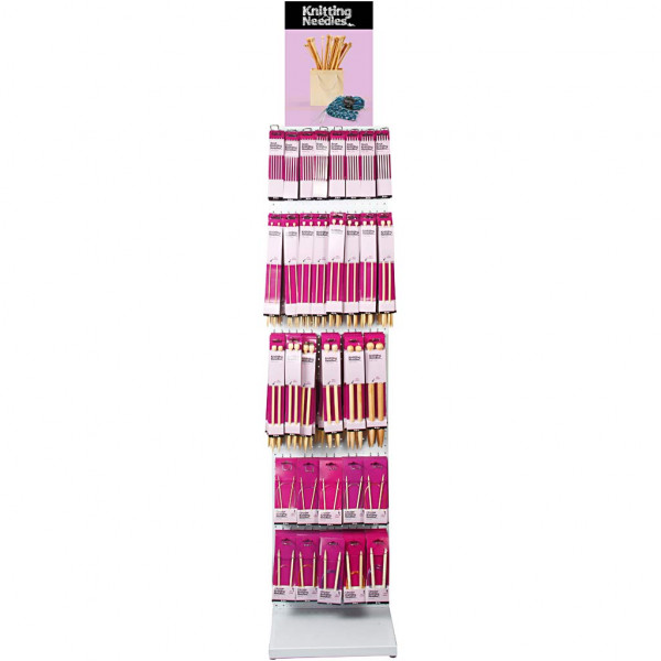 Inhoud: 6 verschillende maten sokkennaalden van elk 10-20 sets, 10 verschillende maten rondbreinaalden van elk 10 stuks en 14 verschillende maten breinaalden van elk 10 paar.