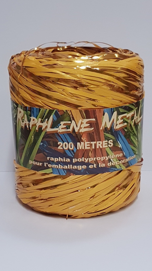 Lint Raffia Metaal Curry 200 meter. Prijs is per rol. Kan per rol besteld worden.