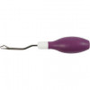 Smyrna haaknaald van metaal met handvat van rubber in een ergonomisch design.