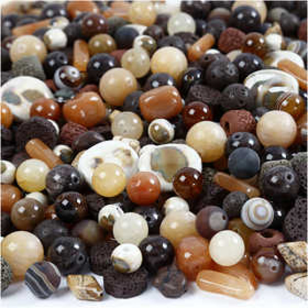 Assortiment prachtige, natuurlijke kralen in bij elkaas passende kleuren en vele verschillende designs.