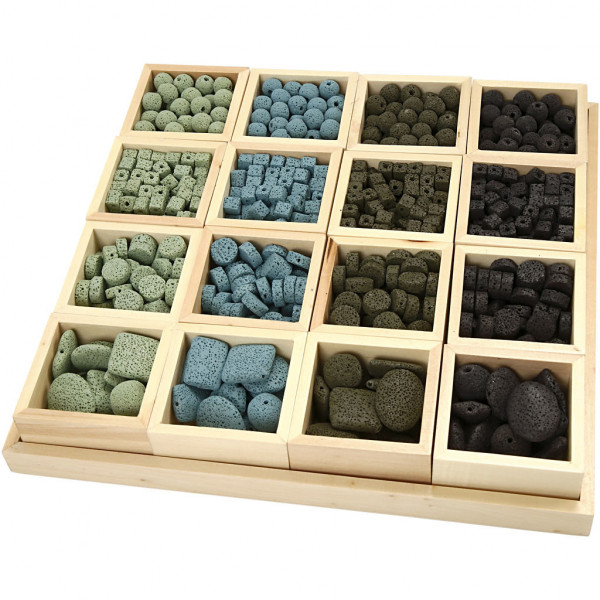 Luxe kralen, d: 6-37 mm, gatgrootte 2 mm, 1 set, blauw/groen harmonie [HOB-99059]