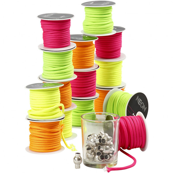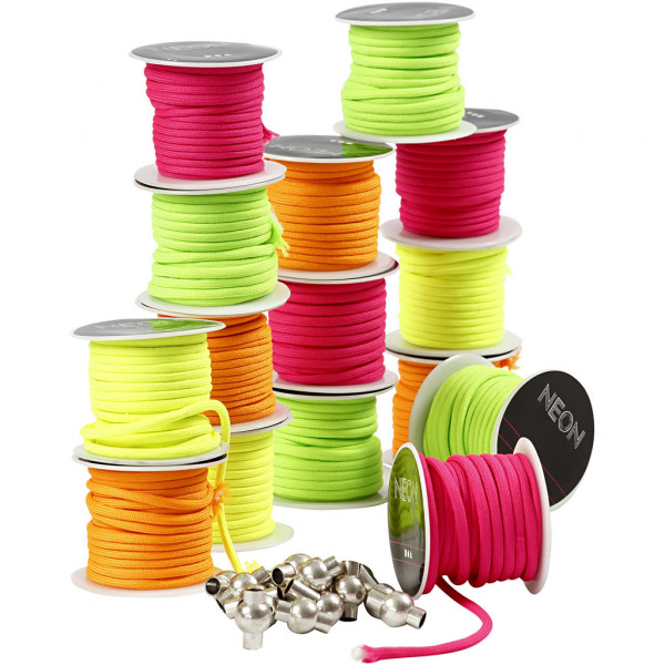 Assortiment semi-glanzend polyester koord met witte kern.