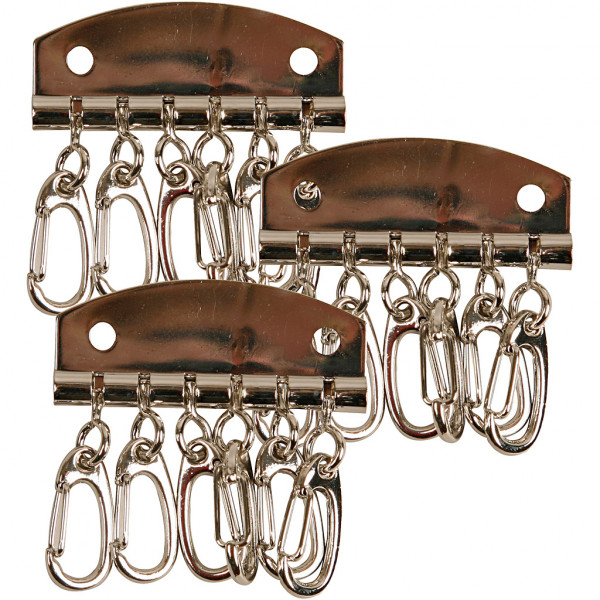Key plate made of metal, with 6 fixed lobster claw clasps.