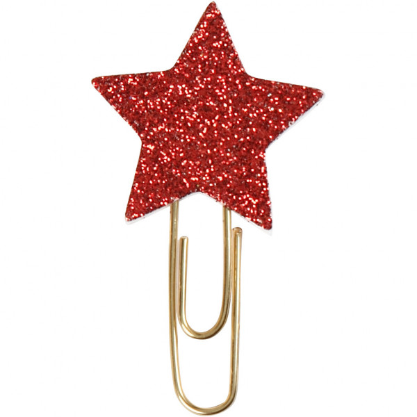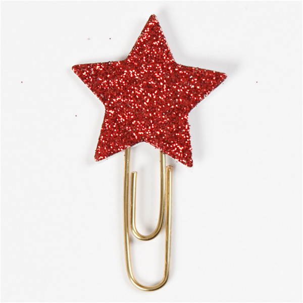 Paperclips, d: 30 mm, rood glitter, ster, 6stuks [HOB-24779]