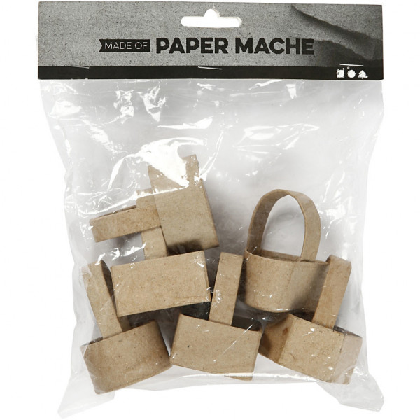 Mini manden van papier-maché met hengsel.