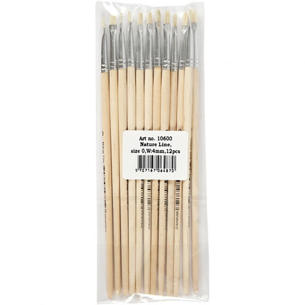 Nature Line kwasten, 0 , b: 4 mm, korte steel, 12stuks [HOB-10600]