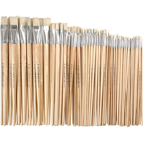 Set platte varkensharen kwasten met lange, gelakte houten steel - ideaal voor gebruik met dikkere verf.
