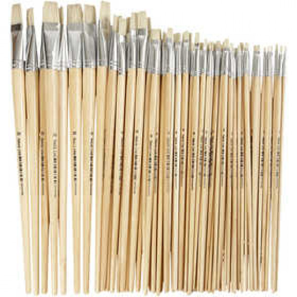 Set platte varkensharen kwasten met lange, gelakte houten steel - ideaal voor gebruik met dikkere verf.