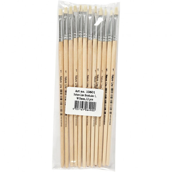 Nature Line kwasten, 1 , b: 5 mm, korte steel, 12stuks [HOB-10601]