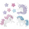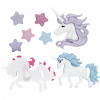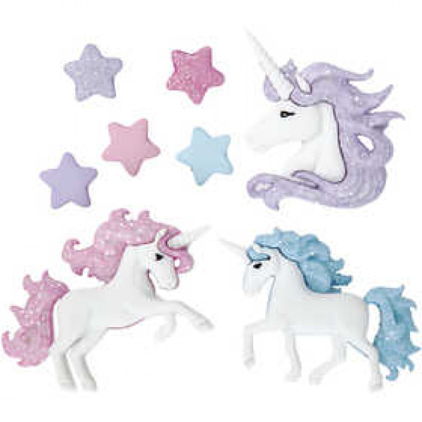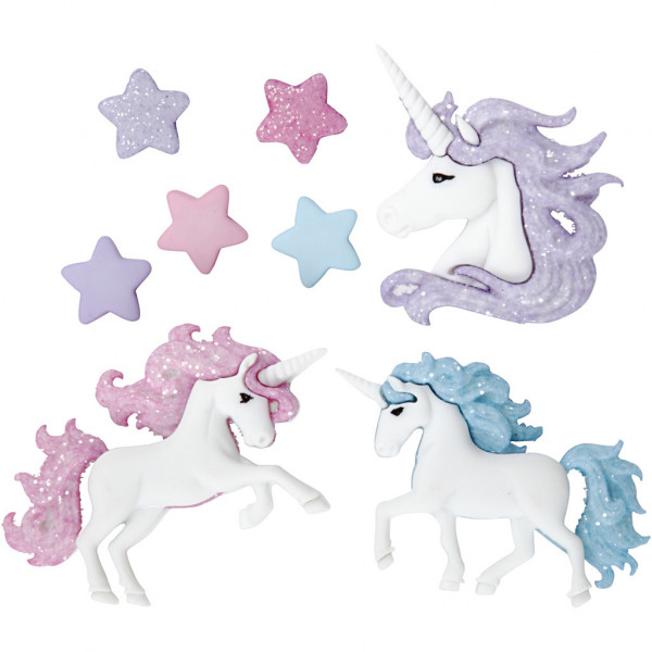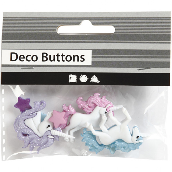 3 x unicorn-shaped plastic buttons.
