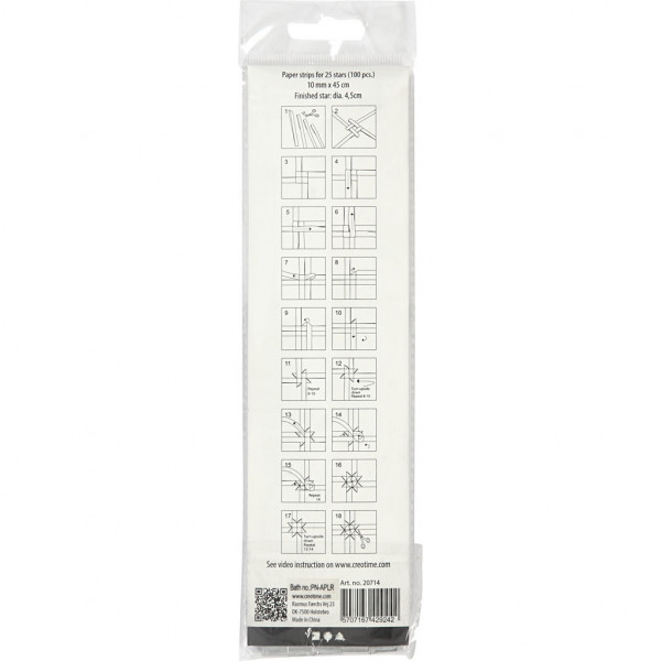 Traditionele papieren stroken voor het maken van gevouwen sterren - de diameter geeft de grote van de gevouwen ster aan.