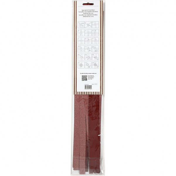 Papieren vlechtstroken, b: 15+25 mm, d: 6,5+11,5 cm, rood, glitter en glanzend, 40stroken, l: 44+78 cm [HOB-20775]