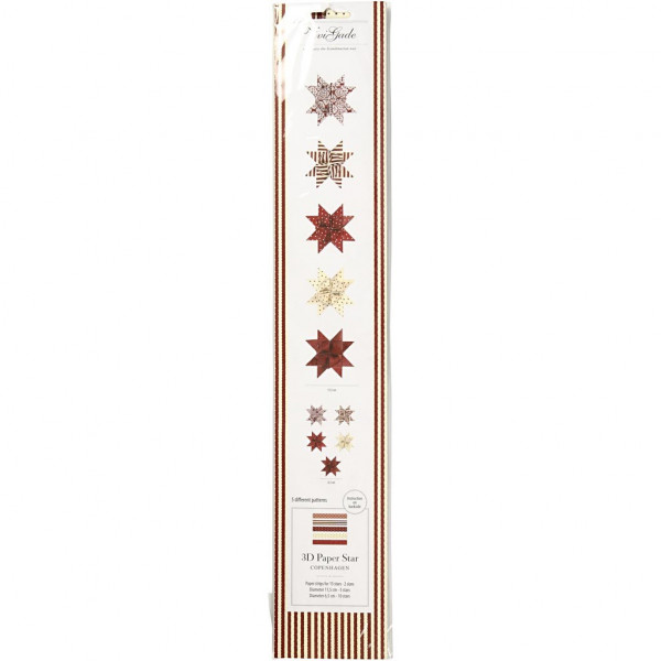 Dubbelzijdig bedrukte papieren vlechtstroken van Vivi Gade Design. Diameter geeft de maat van de kant-en-klare ster aan Inclusief instructie.