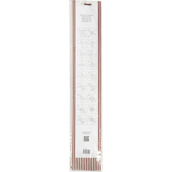 Papieren vlechtstroken, b: 15+25 mm, d: 6,5+11,5 cm, wit, rood, klassiek, 60stroken, l: 44+78 cm [HOB-22248]
