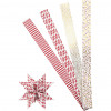 Papieren stroken voor het vlechten van sterren in een design van Vivi Gade. Stroken zijn twee-zijdig bedrukt en voorzien van details van metallic folie. Diameter geeft de maat van de kant-en-klare ster aan. Inclusief instructie.