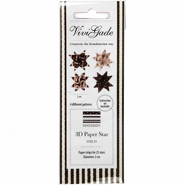 Dubbelzijdig bedrukte papieren vlechtstroken van Vivi Gade Design. Diameter geeft de maat van de kant-en-klare ster aan Inclusief instructie.