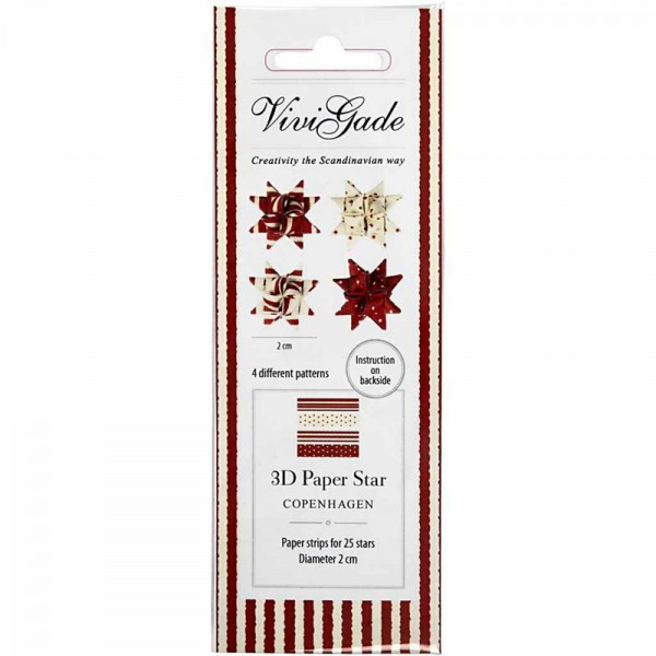 Dubbelzijdig bedrukte papieren vlechtstroken van Vivi Gade Design. Diameter geeft de maat van de kant-en-klare ster aan. Inclusief instructie.