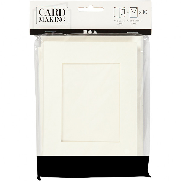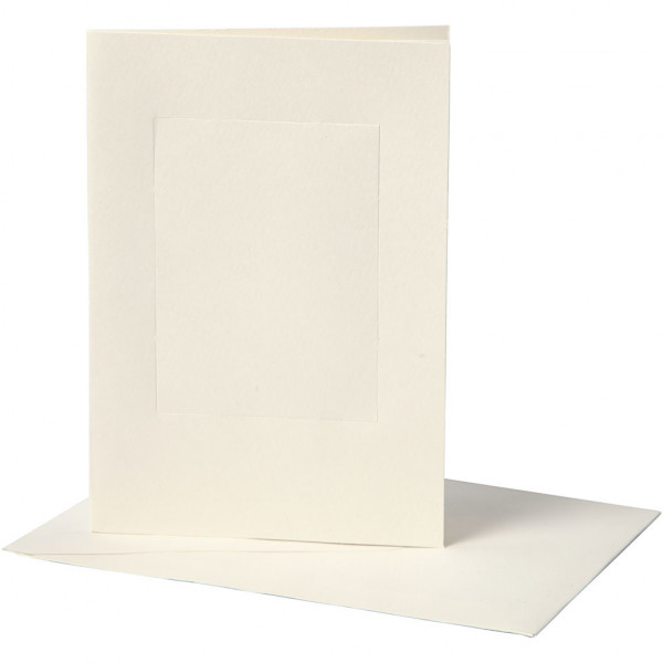 Passepartout Kaarten, afmeting kaart 10,5x15 cm, gatgrootte 6,5x8,8 cm, off-white, rechthoek, 10sets [HOB-23720]