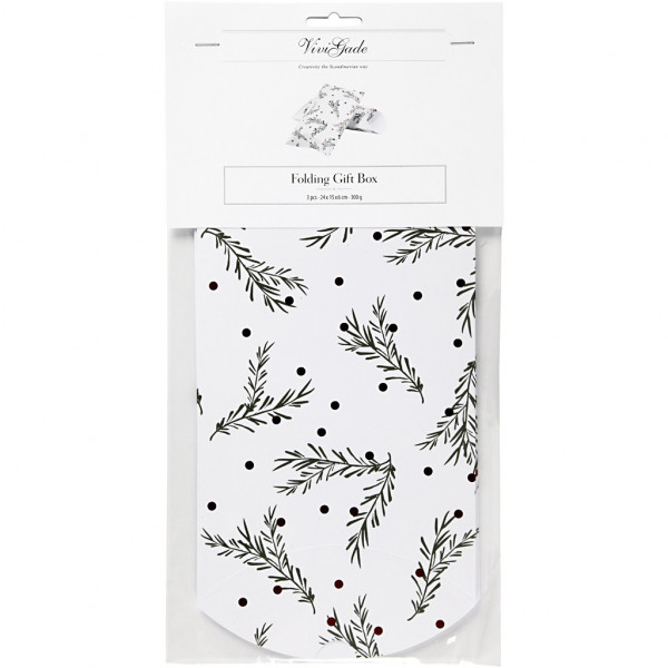 Cadeaudoosje, tak met kerstballen, afm 23,9x15x6 cm,  300 gr, groen, wit, metallic rood, 3stuks [HOB-25357]