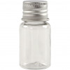 Transparant plastic potje met metallic grijze schroefdop.