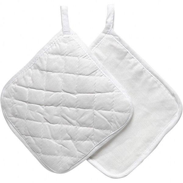 Pot Holders, size 20x20 cm, 145 g/m2, 1 pair, white [HOB-444600]