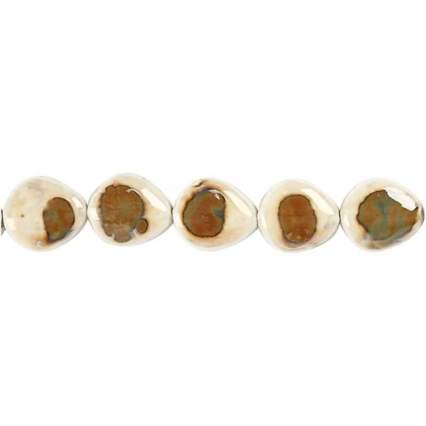 Keramiek kralen, d: 24x22 mm, gatgrootte 2 mm, off-white, ovaal, 9stuks [HOB-69956]