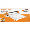 Draagbare snijder met rolmes van Fiskars met plastic oppervlak en hulplijnen. Snijdt tot 15 vellen papier per keer.