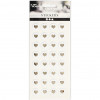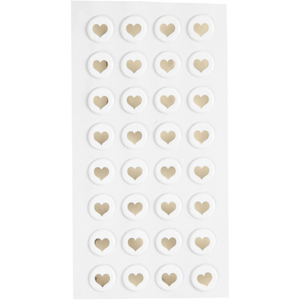 Round epoxy stickers with nice gold heart on white background.