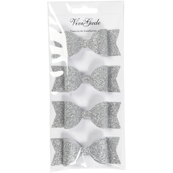 Strikken, afm 31x85 mm, zilver glitter, 4stuks [HOB-24788]