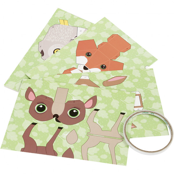 DIY Vouw dieren, h: 8-11,5 cm, b: 3,5-6 cm, 4 stuks [HOB-25277]