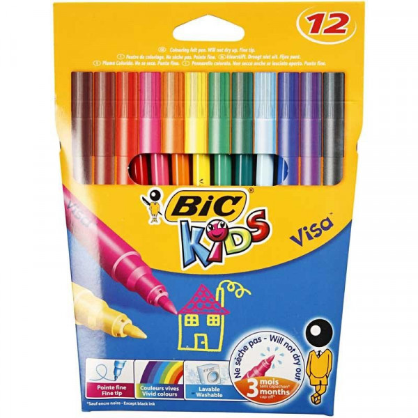 Visa fijne kleurstiften, lijndikte: 1,6 mm, diverse kleuren, 12stuks [HOB-37590]
