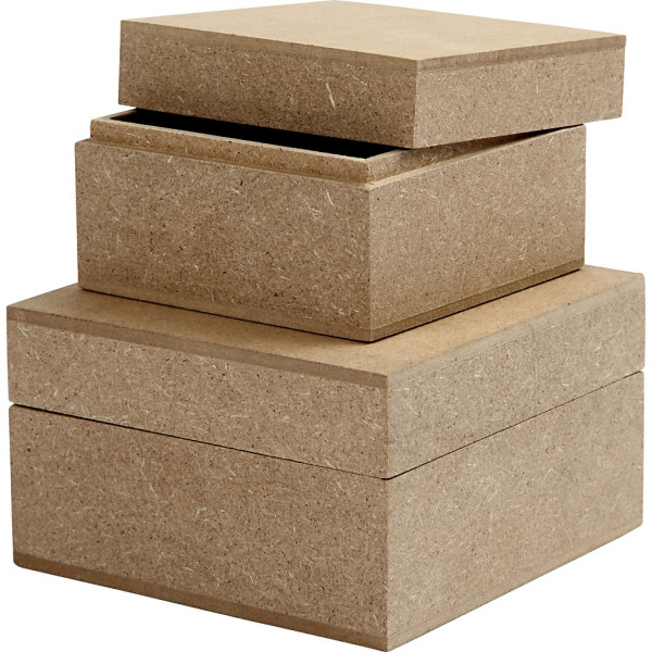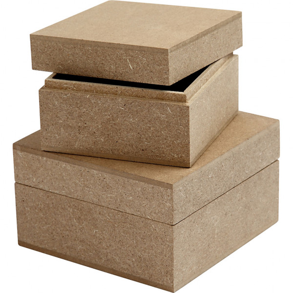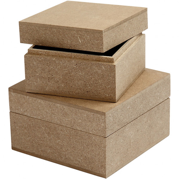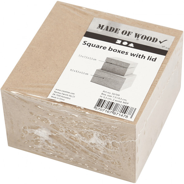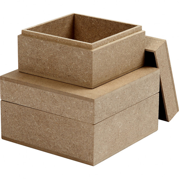 Doos, afm 7,5+9,5 cm, h: 4,8+5,5 cm, MDF, 2stuks, binnenmaat 6,5x6,5x4,3+8,5x8,5x5 cm [HOB-56709]