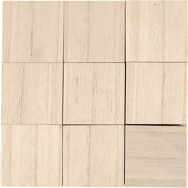 Houten blokken, afm 4x4x4 cm, Keizerin boom, 9stuks [HOB-57398]