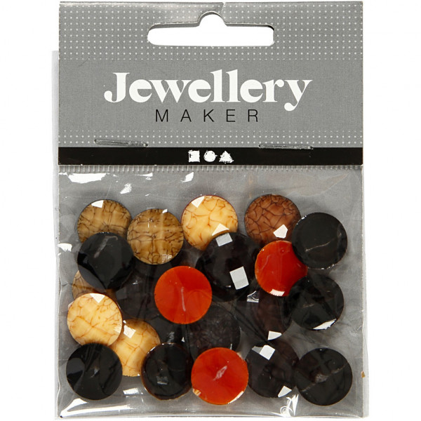 Cabochons, d: 14 mm, dikte 4 mm, 24 div, bruin harmonie [HOB-68017]