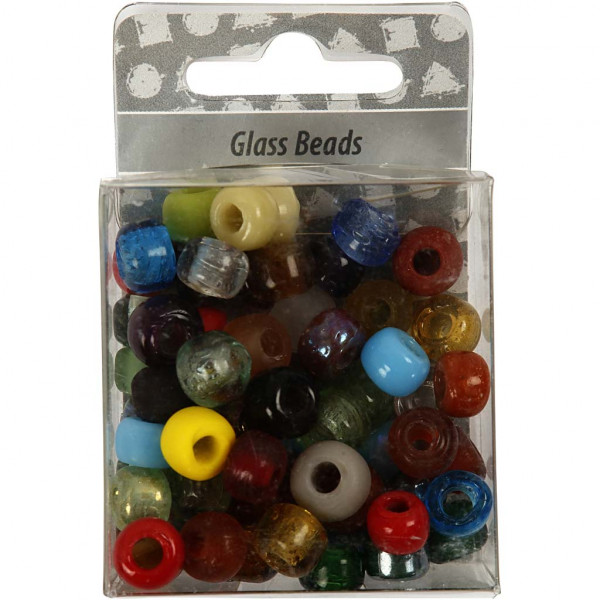 Glaskralen mix, d: 9 mm, gatgrootte 2,5-3 mm, diverse kleuren, 75gr [HOB-692801]