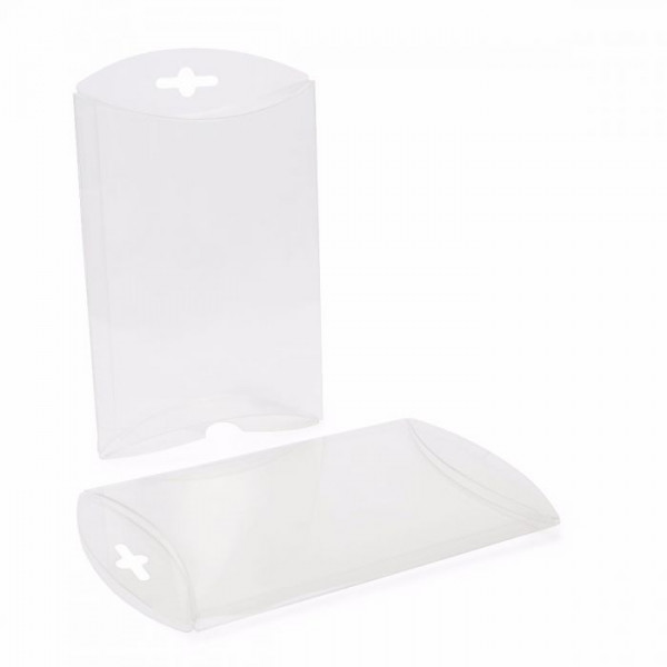 De unieke kussen vorm laat uw product echt opvallen. Deze gondeldoosjes hebben een optionele hangstrip. Bruikbare ruimte (lengte in midden) is 14,6cm.
