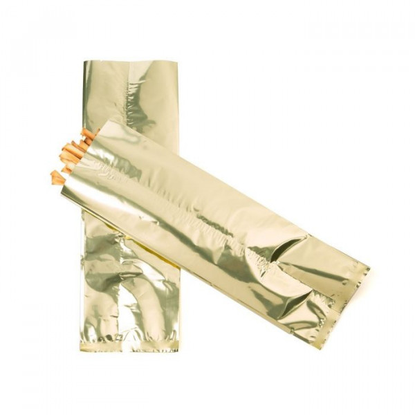 Aantal per pak: 100 stuks kleur: gemetalliseerd goud dikte: 50 micron Materiaal: gemetalliseerd CPP/OPP Formaat: 10,2 x 30,5 cm Sealbaar: Ja Voedselveilig: Ja