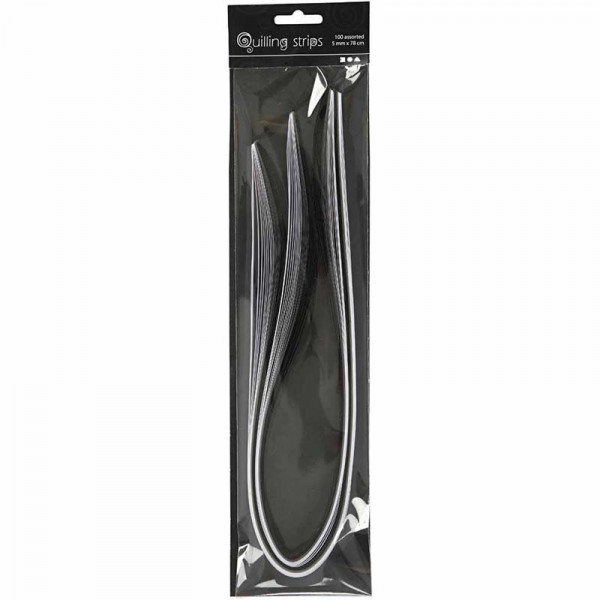 Quilling stroken, b: 5 mm, l: 78 cm, grijs, wit, zwart, 100stuks, 120 gr [HOB-20797]