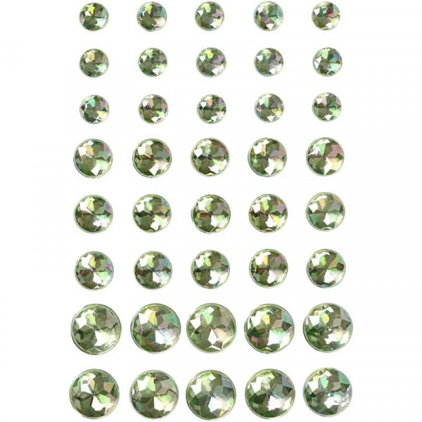Zelfklevende, ronde strassstenen in verschillende groottes met facette bovenkant en platte achterkant van Vivi Gade Design.