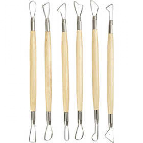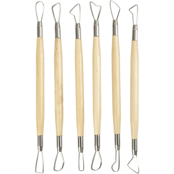 Veelzijdige selectie van mirettes met houten handvaten - te gebruiken voor het versieren en modelleren van klei.