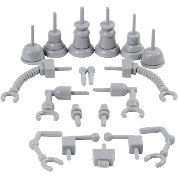 Assortiment kleine onderdelen om een robot te maken. Kan bevestigd worden in allerlei soorten klei.