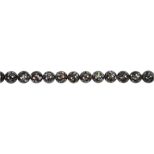 Ronde, gemarmerde kralen van samengedrukte schelpen - geregen op een streng van 40 cm.