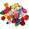 Kleurrijke mix van platte houten kralen in leuke vormen en beschilderd in grappige stijlen - pak bevat 6 vormen.