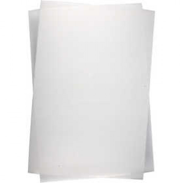 Deze vellen hebben zowel een matte als een glanzende kant. Zodra deze in een huishoudoven worden verwarmd krimpt het plastic tot 40% van de originele grootte.