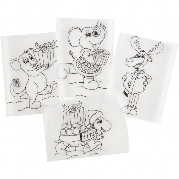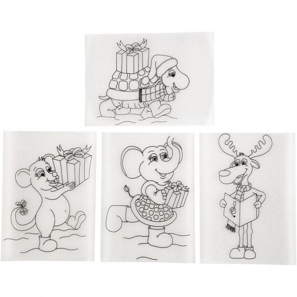 Vellen met voorgedrukt design en zowel een mat als glanzend oppervlak. Krimpt tot 40% van de oorspronkelijke grootte na verhitting in een huishoudoven. Kan gedecoreerd worden met potloden op de matte kant en permanente stiften aan de glanzende.
