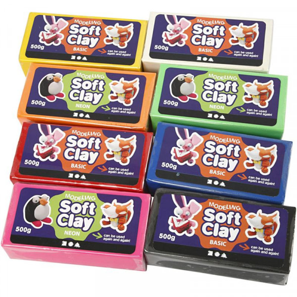 Soft Clay, afm 13x6x4 cm, diverse kleuren, 8x500gr [HOB-78695]
