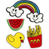 Zelfklevende stickers gemaakt van plastic, bedrukt met kleurrijke motieven. Te gebruiken als decoratie op tassen, mobiele telefoon hoezen en schoenen.