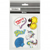 Zelfklevende stickers gemaakt van plastic, bedrukt met kleurrijke motieven. Te gebruiken als decoratie op tassen, mobiele telefoon hoezen en schoenen.