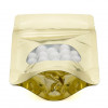 Zoek je dé perfecte verpakking voor je product? Een verpakking met uitstraling, wat zichzelf goed presenteert bij elke retailer? Dan is dit precies wat je zoekt. Deze Stazak heeft als kenmerk dat het recht op kan staan als het gevuld is, waardoor het er perfect uit ziet in de schappen van een supermarkt, speciaalzaak of elke andere winkel. De gemetalliseerde buiten laag heeft bovendien een bijzondere uitstraling. En gecombineerd met het kristal helder ovale venster zorgt de verpakking er voor dat het product in de zak gezien mag worden. Op de achterkant van de zak is er voldoende ruimte voor een etiket, sticker of label. En mocht u een eigen bedrukking willen hebben, dan behoort ook dat tot de mogelijkheden. Vraag dan onze verkoop afdeling naar de mogelijkheden.
